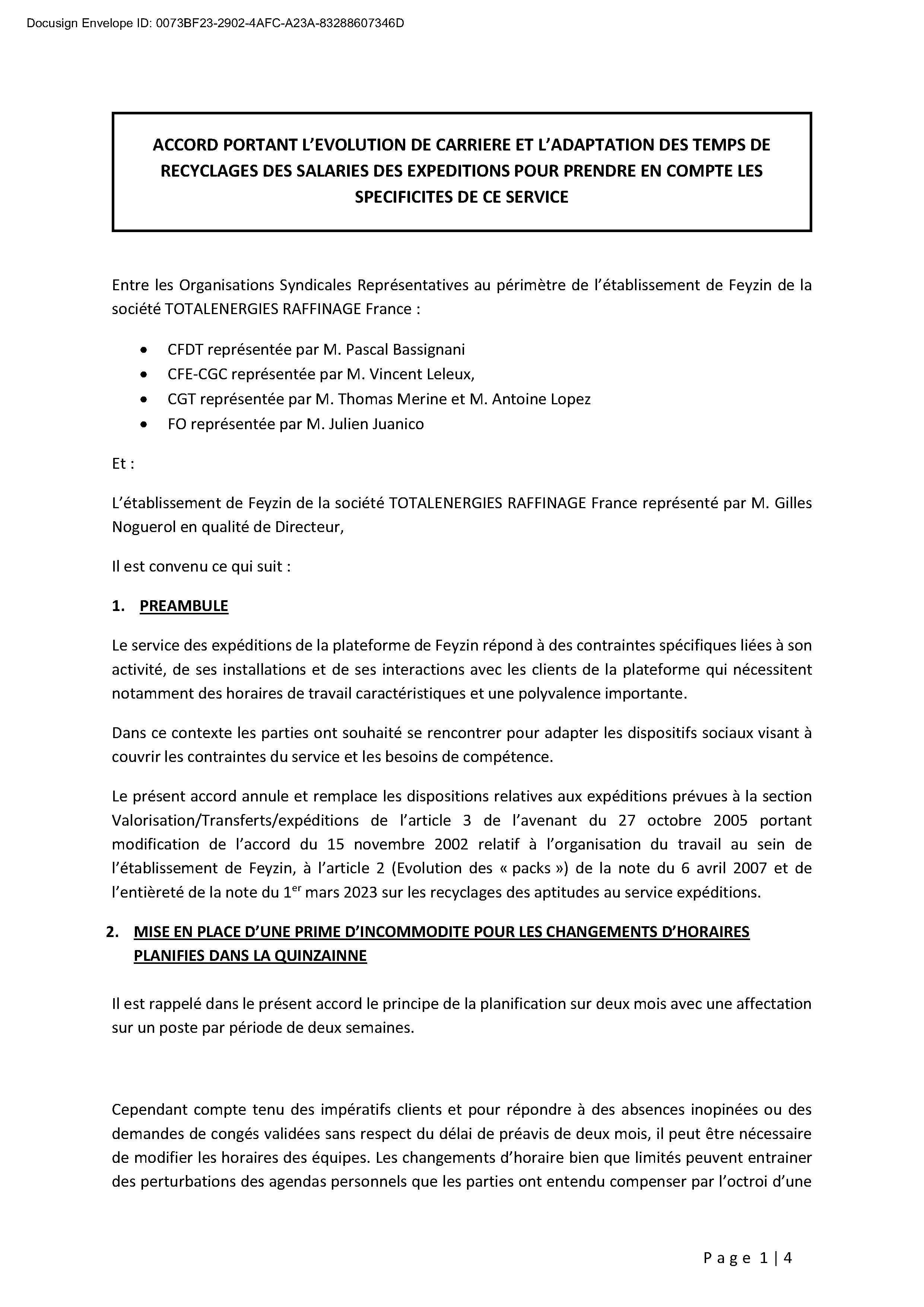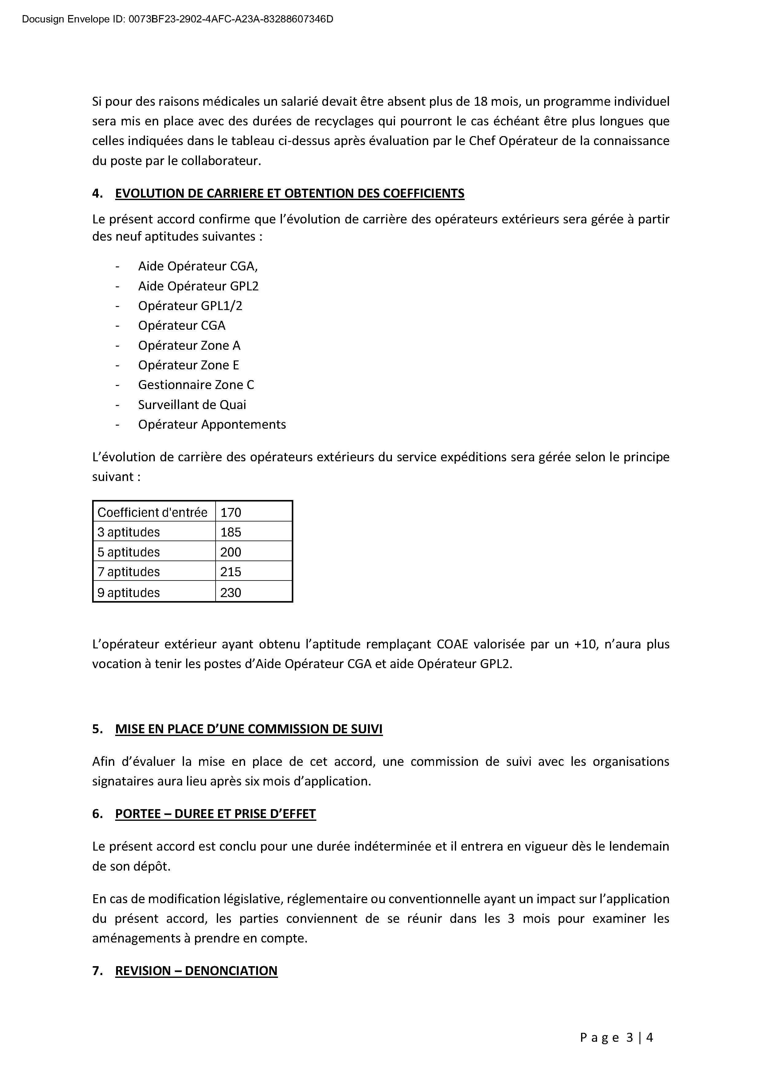 Accord portant sur l'évolution de carrière et l'adaptation des temps de recyclage des salariés des expéditions